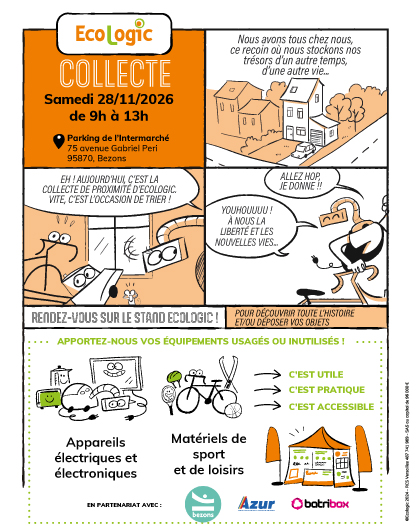 Notre partenaire Ecologic se déplace sur le parking de l’Intermarché de Bezons (75 avenue Gabriel Péri) pour collecter :