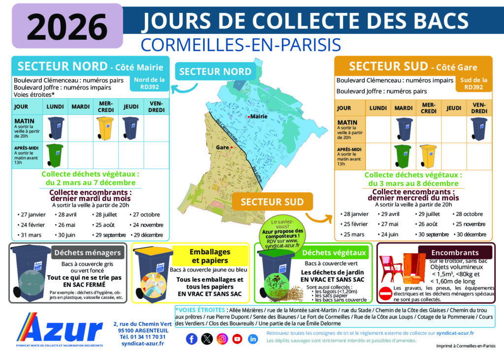 Calendrier collecte 2026 Cormeilles-en-Parisis