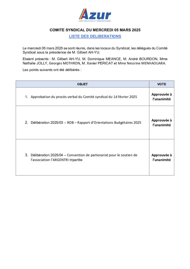 Liste des délibérations 05/03/2025