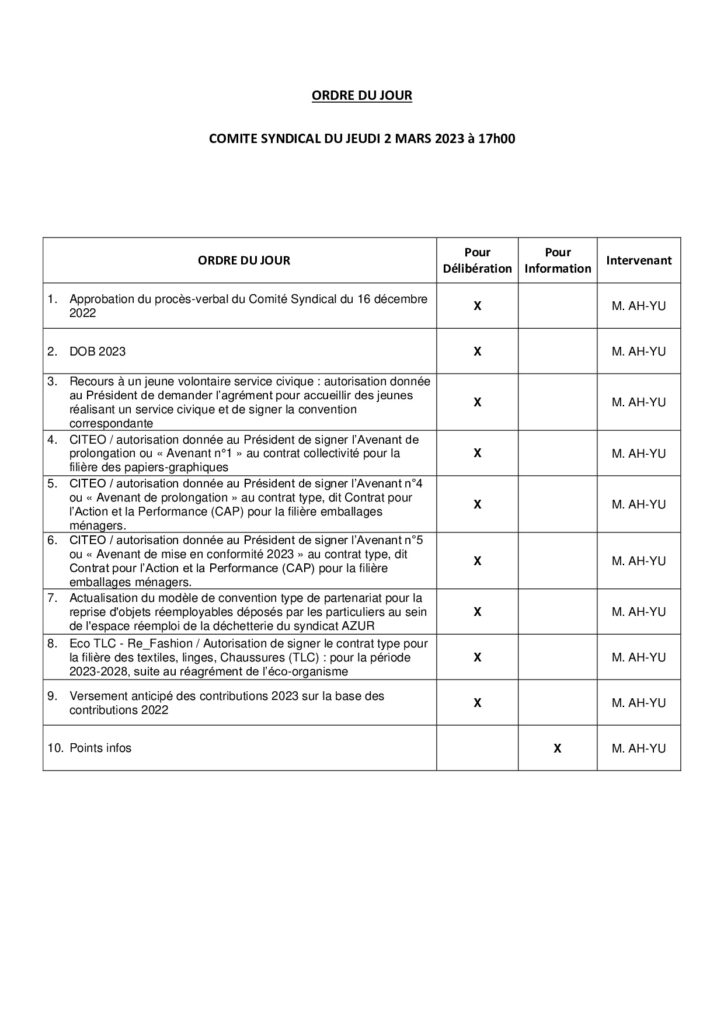 Ordre du Jour du 02/03/23