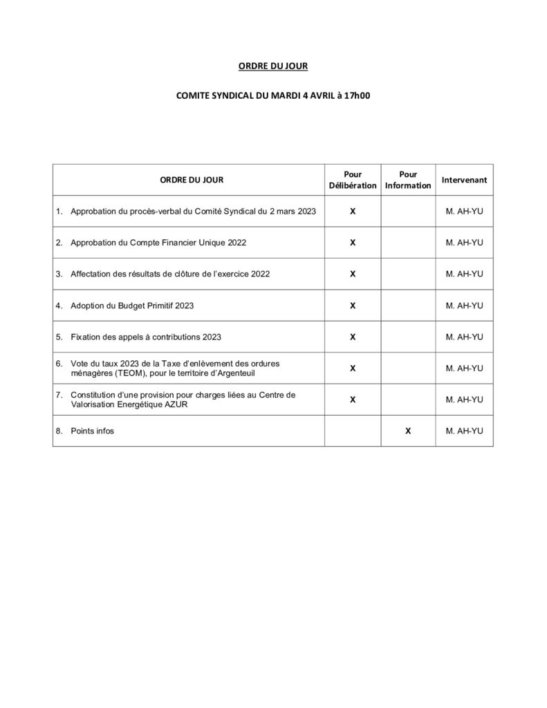 Ordre du Jour du 04/04/23